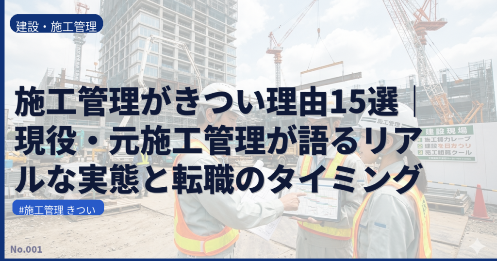 施工管理がきつい理由15選|現役・元施工管理が語るリアルな実態と転職のタイミング 施工管理がきつい理由15選|現役・元施工管理が語るリアルな実態と転職のタイミング 「施工管理ってきつい仕事ですか?」と聞かれたら、多くの現役施工管理技士は「きつ...
