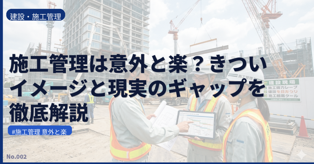 施工管理は意外と楽?きついイメージと現実のギャップを徹底解説 「施工管理 意外と楽」という検索が月間700件も行われている背景には、きついと聞いていたのに実際はそうでもなかったという人と、楽だと思ったら全然楽じゃなかったという人の両方がいます... -