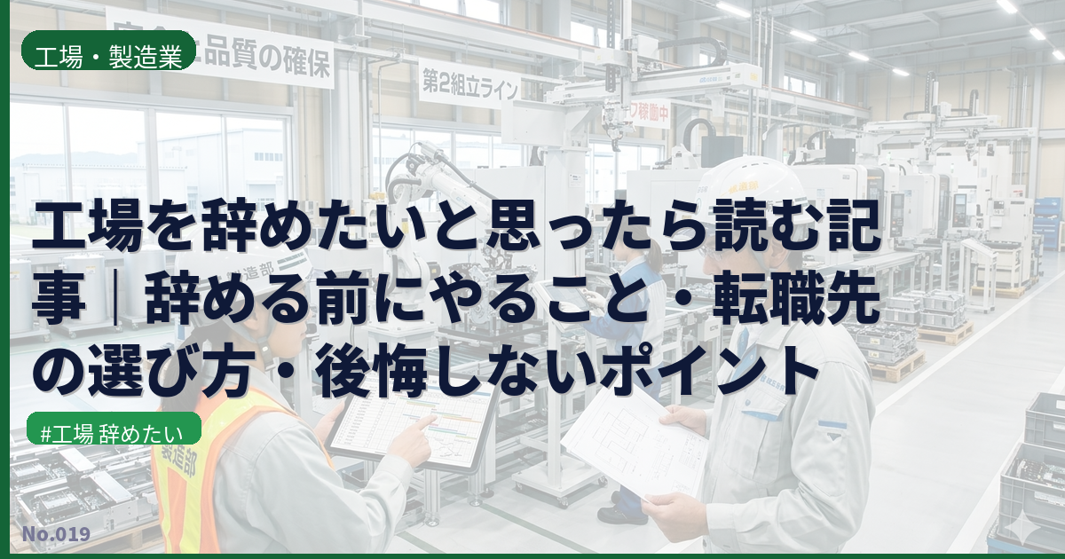 本記事では、あなたが後悔しない選択をするための完全ガイドとして、「辞めるべき危険なサイン」と「まだ続けるべきケース」の明確な判断基準、トラブルなく円満に辞めるための退職手順、そして工場経験を活かせるおすすめの転職先まで徹底的に解説します。感情的な退職で失敗しないよう、まずは冷静に現状を整理しましょう。