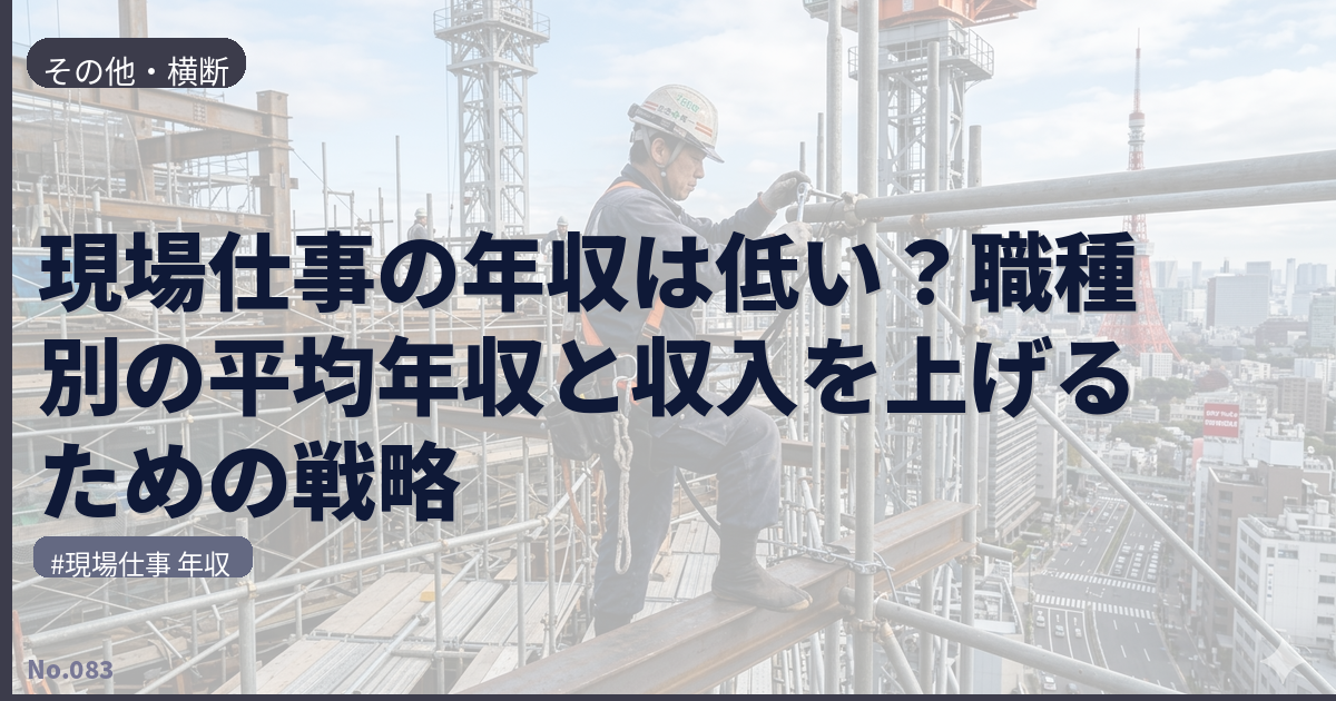 この記事では、建設・土木・製造・物流などの主要な現場仕事について、職種別の平均年収から年収アップの方法まで徹底的に解説します。これから現場仕事に就く方も、現在現場で働いていて収入を上げたい方も、ぜひ参考にしてください。