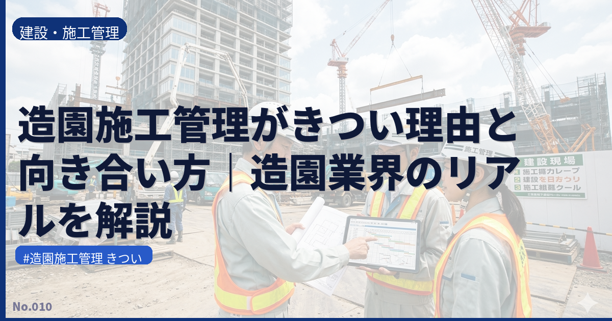 造園施工管理のきつさは「屋外重労働×書類業務×植物リスク×人手不足×発注者対応」の五重苦。しかし、緑が形として残る大きなやりがいも確かに存在する。