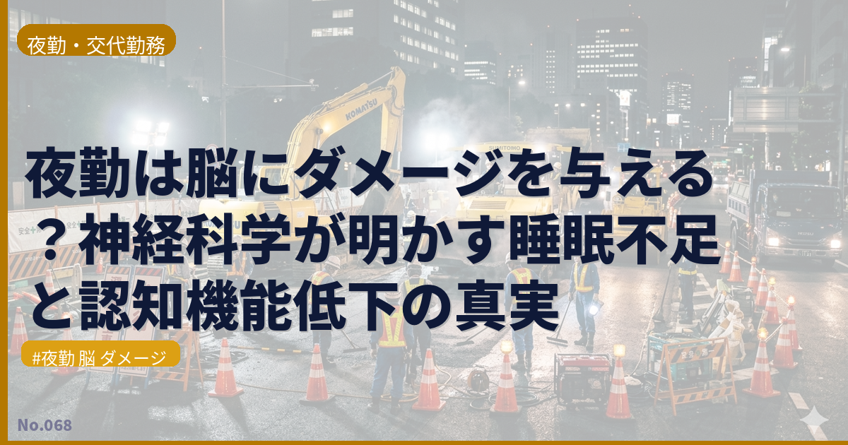 この記事では、最新の睡眠科学・神経科学の研究が示す「夜勤が脳に与えるダメージのメカニズム」を、工場・警備・物流など現場で働く方にもわかりやすく解説します。さらに、脳へのダメージを最小化するための実践的な対策、そして「夜勤を続けるべきか辞めるべきか」の判断基準まで徹底解説します。