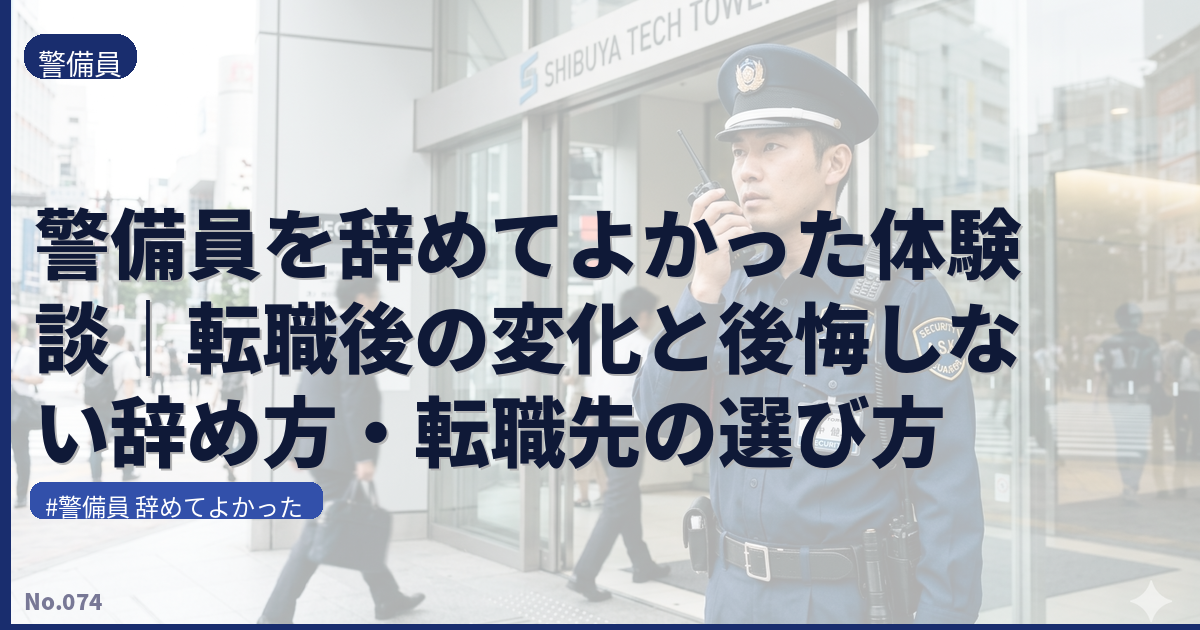 - 警備員の離職率は全産業平均の約2〜2.5倍。多くの人が辞めていく環境であり、辞めることは「負け」ではなく「現状を変える賢明な決断」である